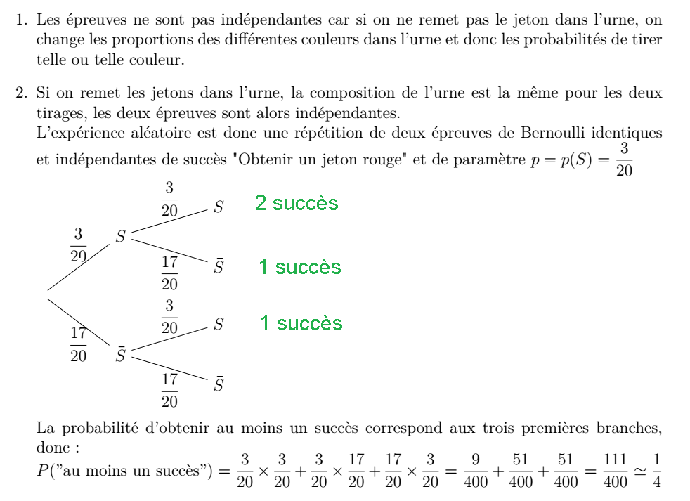 Expériences aléatoires à plusieurs épreuves indépendantes