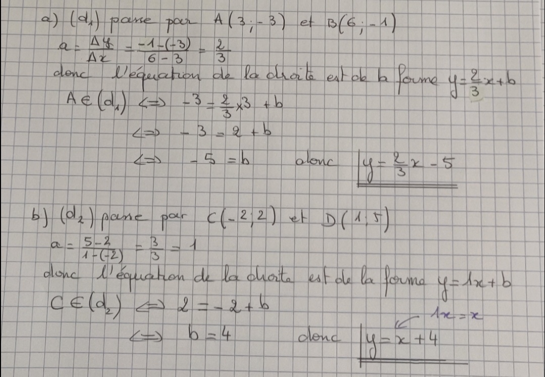 Exercice 178 page 28 des automatismes : trouver une équation réduite connaissant les coordonnées de deux points de la droite.