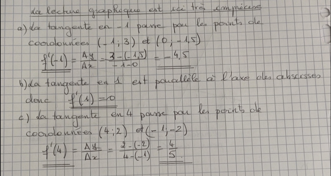 Exercice 183 page 29 des automatismes : déterminer le nombre dérivé avec une tangente tracée